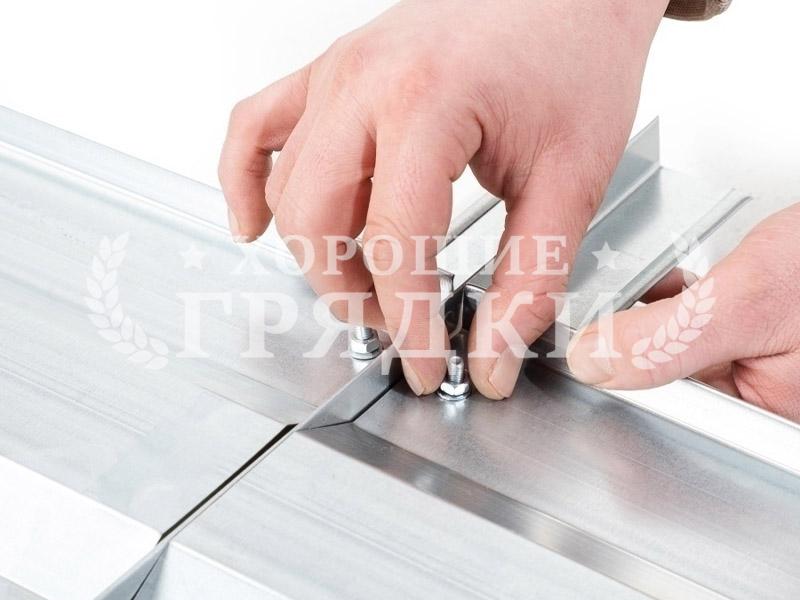 Соедините борта с ножками и зафиксируйте стяжкой — грядка готова. Крепеж и инструкция в комплекте.